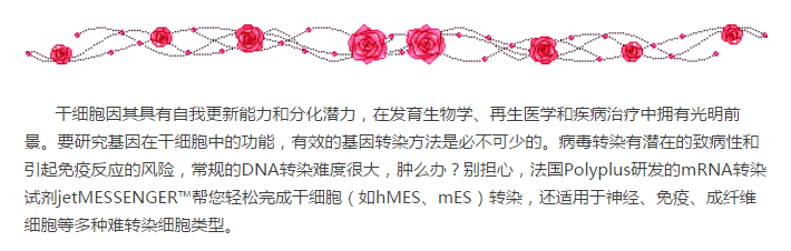 干細胞轉(zhuǎn)染福音,法國Polyplus的jetMESSENGER?您不容錯過!