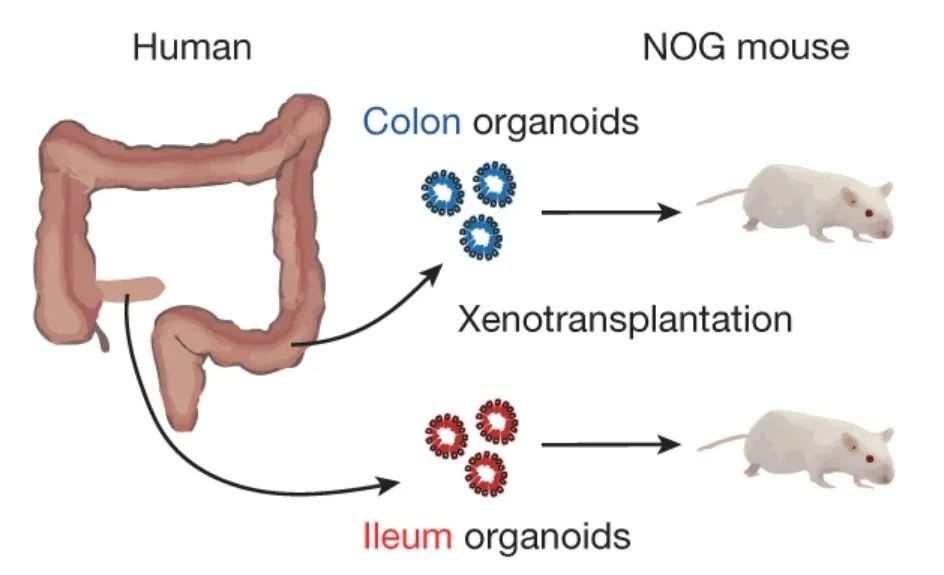 將人類(lèi)回腸或結(jié)腸類(lèi)器官移植到免疫缺陷(NOG)小鼠結(jié)腸