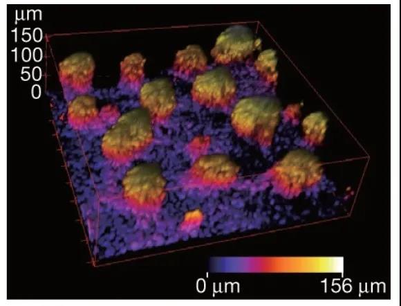 圖像以三維(3D)方式堆疊,并根據(jù)從下到上的距離來(lái)著色。
